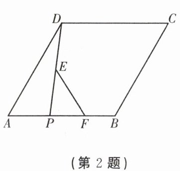 2. 如图,在菱形 $ABCD$ 中,$E$ 是 $AB$ 边上一点,且 $\angle A=\angle EDF = 60^{\circ}$,有四个结论:① $AE = BF$;② $\triangle DEF$ 是等边三角形;③ $\triangle BEF$ 是等腰三角形;④ $\angle ADE=\angle BEF$。其中正确的有( )