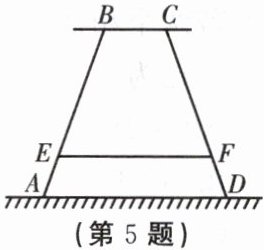5. 某校为高一新生设计的学生板凳的正面视图如图所示,其中$BA = CD$,$BC = 20cm$,$BC$,$EF$平行于地面$AD$且到地面$AD$的距离分别为$40cm$,$8cm$,为使板凳底端$A$,$D$之间的距离为$50cm$,那么横梁$EF$应为多长?(材质及其厚度等忽略不计)