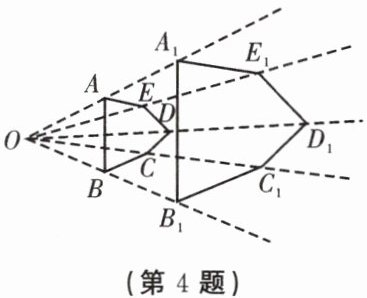 4. 如图,以点$O$为位似中心,把五边形$ABCDE$的面积扩大为原来的$4$倍,得五边形$A_1B_1C_1D_1E_1$,则$OD:OD_1=$