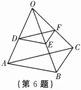 6. 如图,已知$\triangle DEO$与$\triangle ABO$是位似图形,$\triangle OEF$与$\triangle OBC$是位似图形.求证:$OD· OC = OF· OA$.