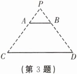 3. 如图,电灯 $ P $ 在横杆 $ AB $ 的正上方,$ AB $ 在灯光下的影子为 $ CD $,$ AB // CD $,$ AB = 1.5\ m $,$ CD = 4.5\ m $,点 $ P $ 到 $ CD $ 的距离为 $ 2.7\ m $,则 $ AB $ 与 $ CD $ 间的距离是