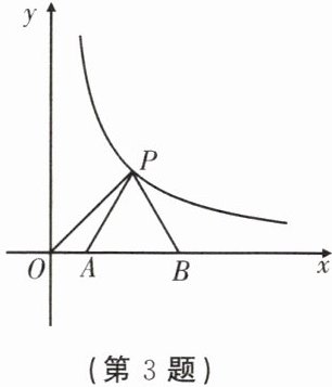 3. 如图,$ P(m,m) $ 是反比例函数 $ y = \frac{9}{x} $ 在第一象限内的图象上一点,以 $ P $ 为顶点作等边三角形 $ PAB $,使 $ AB $ 落在 $ x $ 轴上,则 $ \triangle POB $ 的面积为( )