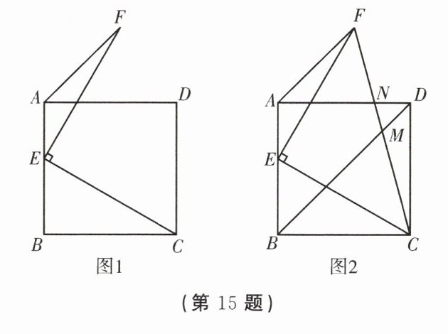 15. (14 分)如图 1,点 $E$ 为正方形 $ABCD$ 的边 $AB$ 上一点,$EF\perp EC$,且 $EF = EC$,连接 $AF$.
