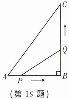 19.(9分)如图,在$\triangle ABC$中,$\angle B=90^{\circ}$,$AB=6cm$,$BC=8cm$,若点$P$从点$A$出发沿$AB$边向点$B$以1cm/s的速度移动,点$Q$从点$B$出发沿$BC$边向点$C$以2cm/s的速度移动,两点同时出发.