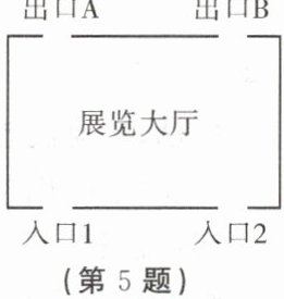 5. 某展览大厅有 2 个人口和 2 个出口,其示意图如图所示,参观者可从任意一个人口进入,参观结束后可从任意一个出口离开.小明从人口 1 进入并从出口 A 离开的概率是( )