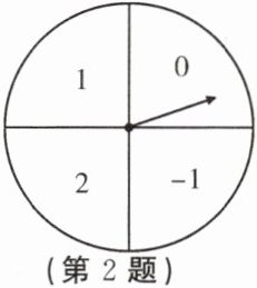 2. 如图所示的是一次数学活动课制作的一个转盘,盘面被等分成四个扇形区域,并分别标有数 -1,0,1,2.若转动转盘两次,每次转盘停止后记录指针所指区域的数(当指针恰好指在分界线上时,不记录,重转),则记录的两个数都是正数的概率为( )