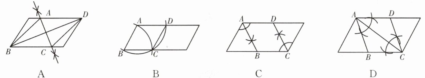 3. 用尺规在一个平行四边形内作菱形 $ABCD$,下列作法中错误的是( )