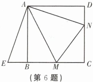 6. 如图,点 $M$,$N$ 分别在正方形 $ABCD$ 的边 $BC$,$CD$ 上,且$\angle MAN = 45^{\circ}$.把$\triangle ADN$ 绕点 $A$ 顺时针旋转 $90^{\circ}$得到$\triangle ABE$.