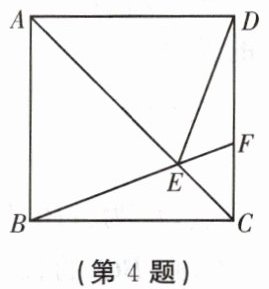 4. 如图,在正方形 $ABCD$ 中,点 $F$ 为 $CD$ 上一点,$BF$ 与 $AC$ 交于点 $E$,连接 $DE$.若$\angle CBF = 20^{\circ}$,则$\angle AED=$____$^{\circ}$.
