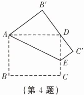 4. 如图,有一张矩形纸片 $ABCD$,$AB = 8\ cm$,$BC = 10\ cm$,点 $E$ 为 $CD$ 上一点,将纸片沿 $AE$ 折叠,$BC$ 的对应边 $B'C'$ 恰好经过点 $D$,则线段 $DE$ 的长为