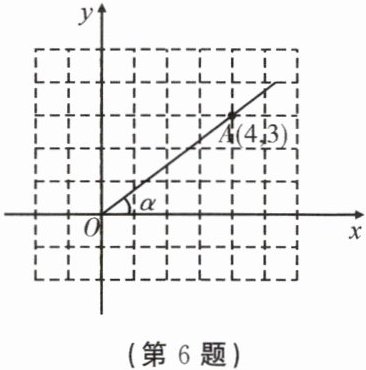 6. 如图,在平面直角坐标系中,点 $ A $ 的坐标为 $ (4, 3) $,那么 $ \cos \alpha $ 的值是