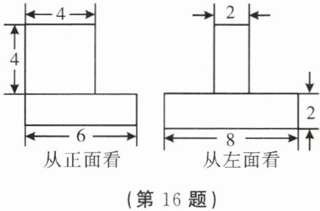 16. 由两个长方体组合而成的一个立体图形,从两个不同的方向看得到的图形如图所示,根据图中所标尺寸(单位:mm)可知,这两个长方体的体积之和是______ $mm^3$.
