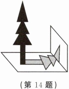 14. 如图,数学兴趣小组的小颖想测量教学楼前的一棵树的高度. 下午课外活动时她测得一根长为 $1$ m 的竹竿的影长是 $0.8$ m. 但当她马上测量树高时,发现树的影子不全落在地面上,有一部分影子落在教学楼的墙壁上,她先测得留在墙壁上的影高为 $1.2$ m,又测得地面上的影长为 $2.6$ m. 请你帮她算一下,树高是______ m.