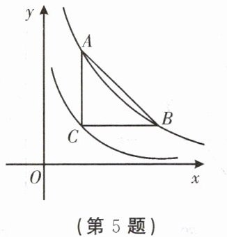 5. 如图,点 $ A $,$ B $ 在双曲线 $ y = \frac{3}{x} $($ x > 0 $)上,点 $ C $ 在双曲线 $ y = \frac{1}{x} $($ x > 0 $)上,若 $ AC // y $ 轴,$ BC // x $ 轴,且 $ AC = BC $,则 $ AB $ 等于( )