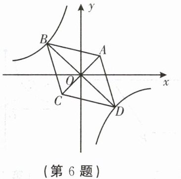 6. 如图,菱形 $ ABCD $ 的两个顶点 $ B $,$ D $ 在反比例函数 $ y = \frac{k}{x} $ 的图象上,对角线 $ AC $ 与 $ BD $ 的交点恰好是坐标原点 $ O $,已知点 $ A(1, 1) $,$ \angle ABC = 60° $,则 $ k $ 的值是( )