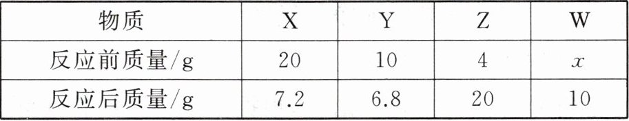 12. 将一定质量的${X}$、${Y}$、${Z}$、${W}$四种物质放入一密闭容器中,在一定条件下充分反应,测得反应前后各物质的质量如下表: