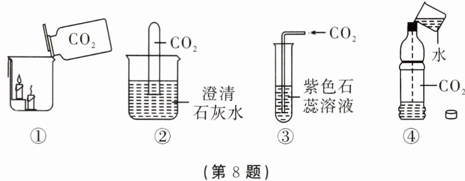 8. 如图所示是有关二氧化碳性质的实验,其中说法正确的是(