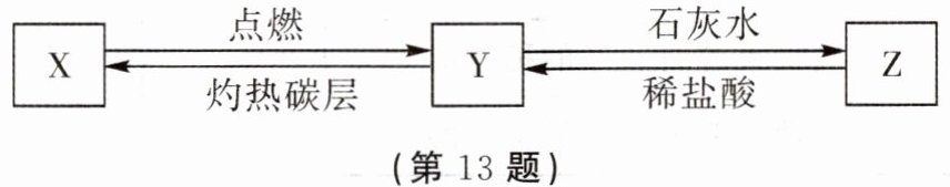 13. X、Y、Z 是初中化学常见的物质,它们之间有如图所示的转化关系。X 是有毒气体,Y 是不支持燃烧的气体,请回答下列问题:
