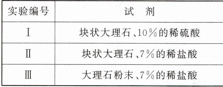 (1)选用试剂。按下表进行实验,取等质量的大理石加入足量酸中(杂质不与酸反应),产生二氧化碳的体积随时间变化曲线如图 1 所示: