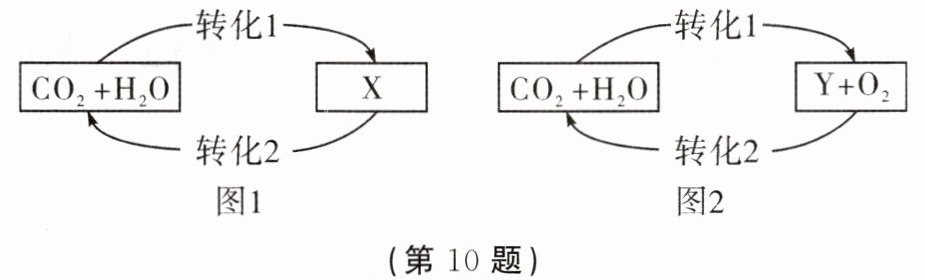 10. 碳循环、氧循环和水循环是自然界存在的三大重要循环。已知图 1 反应条件为常温,图 2 中的转化 1 是植物的光合作用,下列说法正确的是(