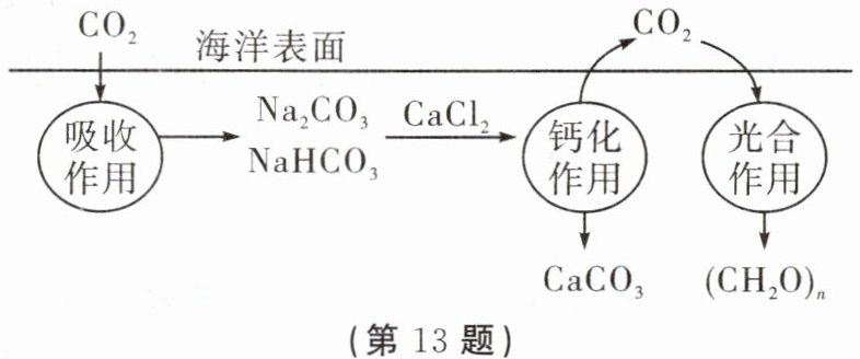 $13. $我国向世界承诺,二氧化碳排放在$ 2030 $年前达到峰值,$2060 $年前实现碳中和。碳封存、碳捕获、碳的综合利用是实现碳中和的重要途径。如图为海水吸收$CO_2$并进行碳循环的原理。