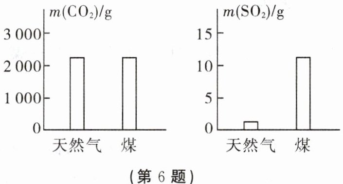 6. 充分燃烧 1 kg 天然气和煤所产生 CO₂和 SO₂的质量如图所示。下列说法不正确的是(