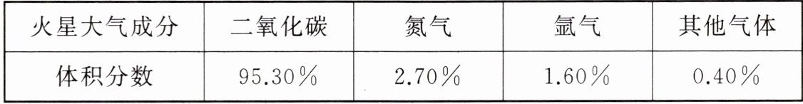 B.火星大气中氮气所占比例高于地球空气中氮气所占比例