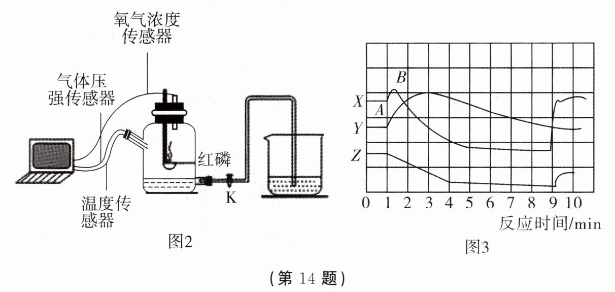(填“温度”或“氧气浓度”)的变化趋势。结合 Y、Z 两条曲线,解释图 3 中 AB 段压强变化的原因:红磷燃烧放热,使装置内温度升高、压强增大