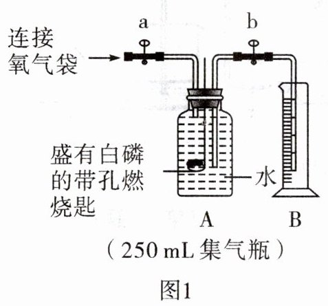 ③打开止水夹 a 和 b,向 A 中缓慢鼓入一定量气体,露出白磷后,关闭止水夹 a 和 b,测得 B 中水的体积为$V_{1}$ mL。