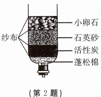 2. 学习了水的净化后,某同学利用课外时间自制了简易净水器(如图所示),下列说法不正确的是(