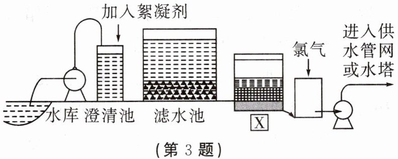 3. 小组同学通过参观考察,绘制了自来水厂处理水的过程模拟图。下列说法错误的是(