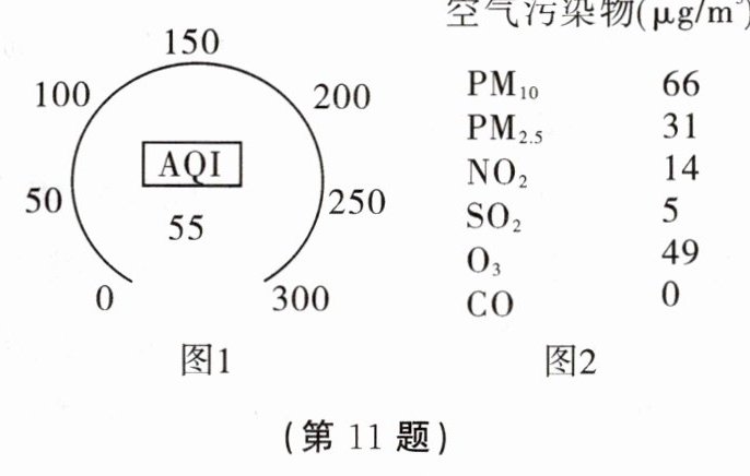 11. 某化学兴趣小组组装并使用微型空气质量检测站(如图 1 所示),得到如图 2 所示的当日学校附近空气质量报告,下列说法正确的是(