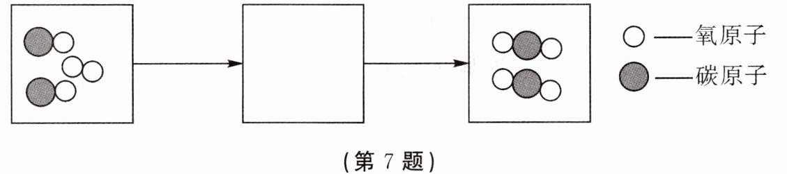 7. 化学反应的过程就是组成反应物分子的原子重新组合成生成物分子的过程。下图是处理汽车排放的某种有毒气体的微观模型。请将方框中的粒子用模型表示出来。