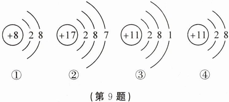 9. 如图是四种微粒的结构示意图,下列说法不正确的是(
