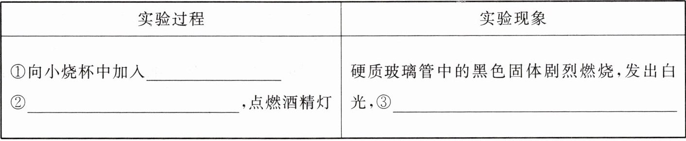 出现,说明蔗糖中含有氢元素和氧元素。(3)观察到硬质玻璃管中残留有黑色固体,他猜测该黑色固体是单质碳,并继续利用如图所示装置,另选试剂进行了验证单质碳的实验。实验过程和现象如下: