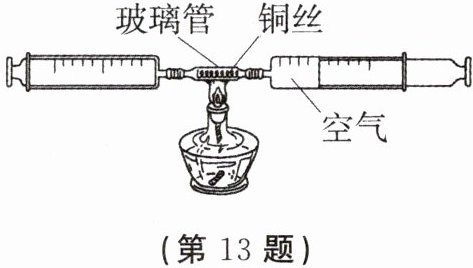 13. 某课外活动小组的同学在学习了“金属铜的化学性质的探究”之后,设计了如图所示的装置,探究“空气中氧气的含量”。
