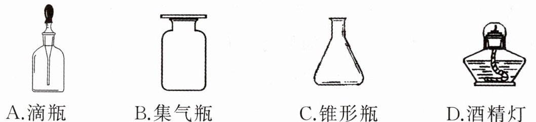 )①集气瓶 ②烧杯 ③滴瓶 ④量筒 ⑤试管 ⑥锥形瓶 ⑦蒸发皿