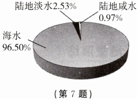 7. 如图是全球海水与陆地水的储量比,下列说法错误的是(