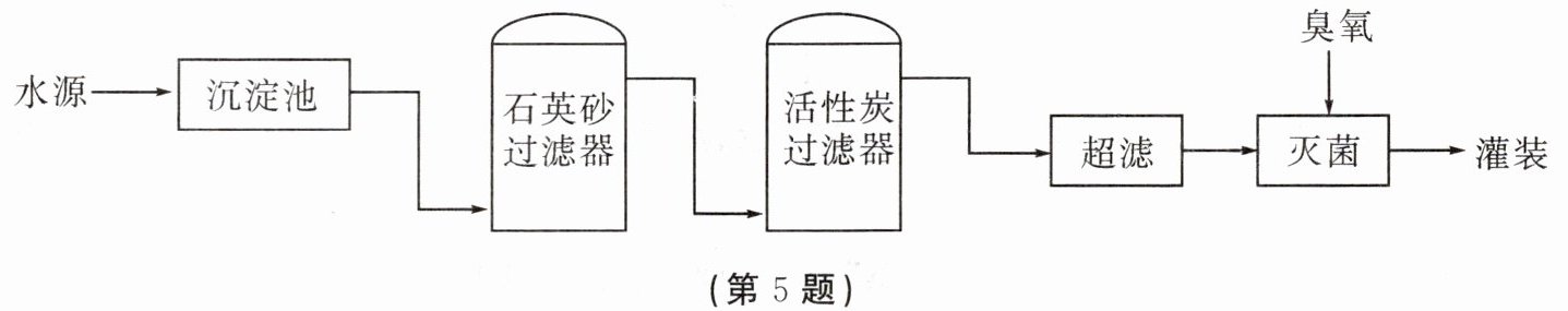5. 实践小组到矿泉水厂进行实地参观。该厂的矿泉水中含有钙、钾等,其生产流程如图所示(超滤是指利用膜分离技术,仅允许小分子和离子通过)。下列说法不正确的是(