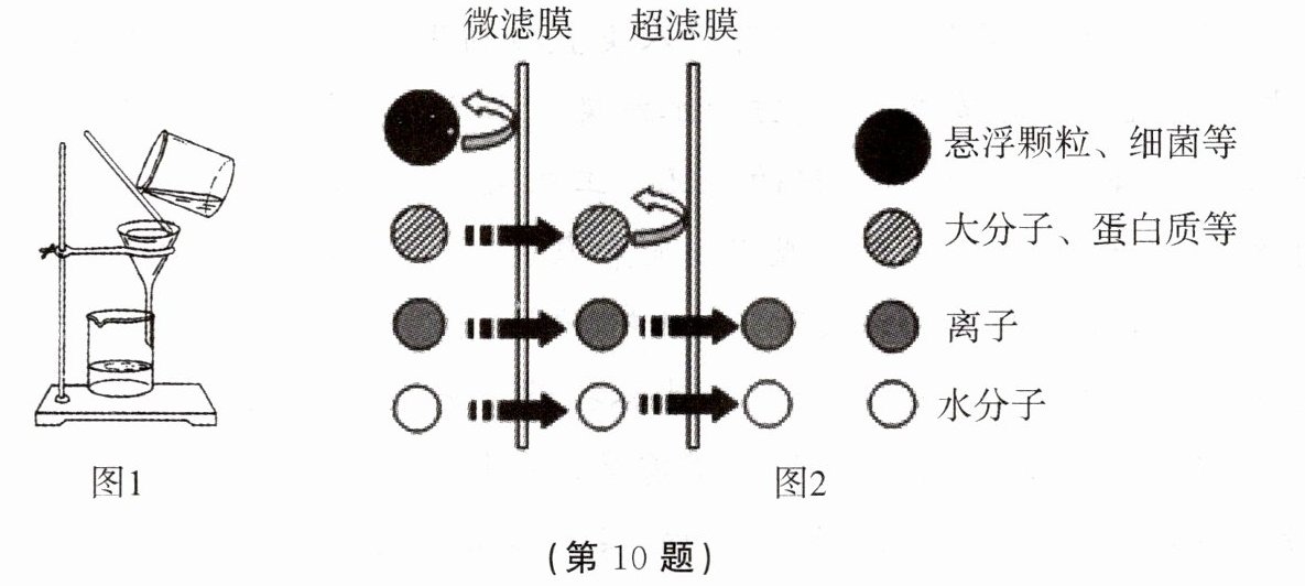 10. 分离提纯是指将混合物中的杂质分离出来以提高其纯度。常用的方法有多种,下面是与水有关的分离提纯实验,请回答相关问题。