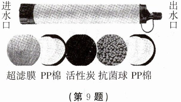 9. 下图是被称为“生命吸管”的便携式户外净水器的内部结构,下列说法错误的是(