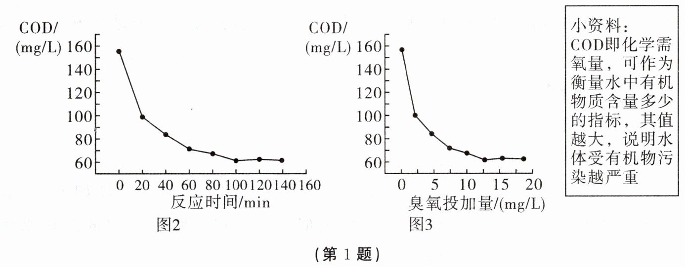 。(2) 由图 2 可知,臭氧催化氧化效果与反应时间的关系是:在臭氧投加量等条件相同时,