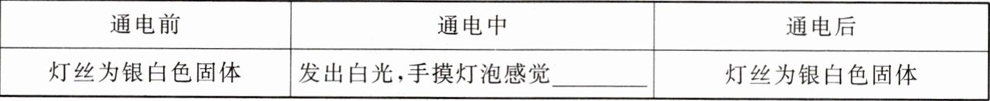 分析:通电前后,钨丝本身没有发生变化,灯光通电发光、放热属于
