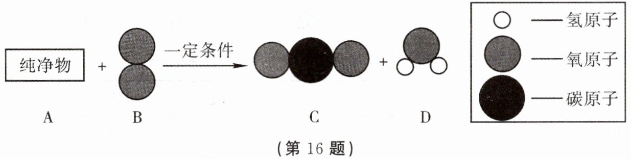 16. 纯净物 A 是打火机的常用燃料,其相对分子质量为 58。在一定条件下,将一定质量的 A 与 10.4g B 按下图所示充分反应,当 B 消耗完时,可生成 8.8g C 和 4.5g D。