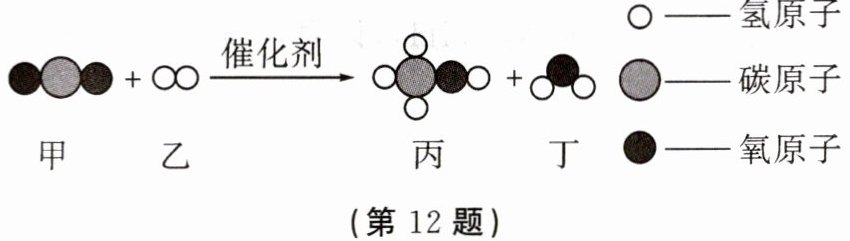 $12.CO₂+3H₂ \overset{催化剂}{=} CH₃OH+H₂O$