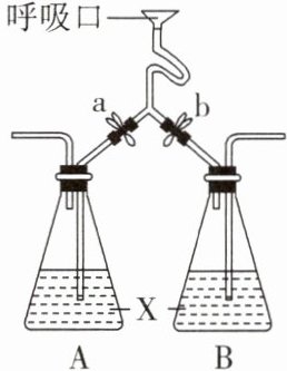 (填“呼气”或“吸气”)操作;接着再关闭 b,打开 a,进行相反操作,连续重复三次,出现明显浑浊现象的是锥形瓶A