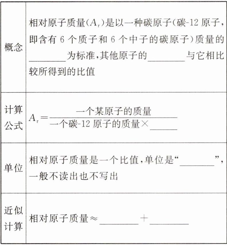 $\frac{1}{12}$ 质量 $\frac{1}{12}$ 1 质子数 中子数