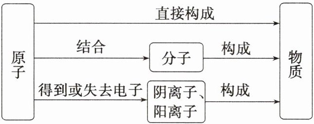 10. 如图是物质与其构成微观粒子之间的关系图,回答下列问题。