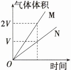 4. 电解水实验中产生气体的体积与时间的关系如图所示。下列分析正确的是(