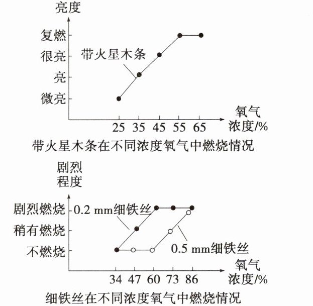 D.由图可知影响铁丝燃烧剧烈程度的因素有氧气浓度和铁丝直径